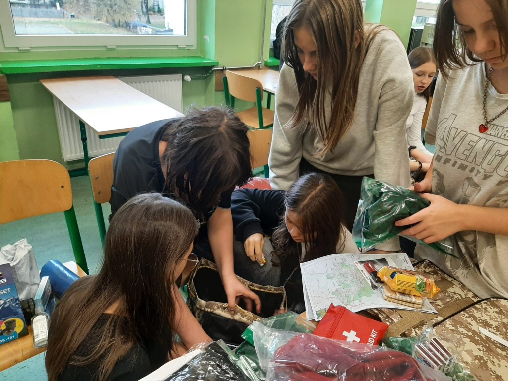 Podczas spotkania uczniowie rozmawiali o tym, jak podejmować właściwe decyzje w trudnych momentach. W ramach ćwiczeń praktycznych uczniowie pakowali też plecaki z najpotrzebniejszymi rzeczami, które mogą przydać się w nagłych sytuacjach.