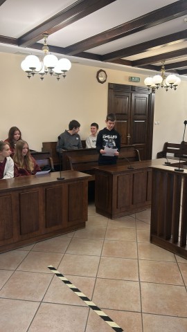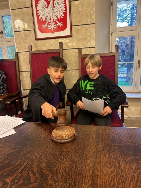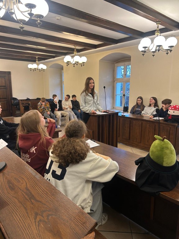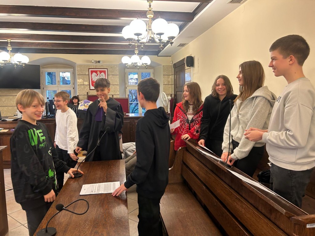 Podczas zajęć uczniowie poznali, jak funkcjonuje system sądownictwa w Polsce oraz jakie etapy obejmuje postępowanie sądowe. Mieli okazję przeanalizować różne sytuacje prawne, a następnie sami wcielili się w role uczestników przykładowej rozprawy.