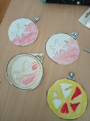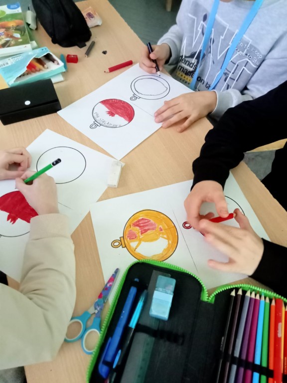 Tytułowa bombka to ozdoba choinkowa wykonana przez szesnastoletniego uczestnika Powstania Warszawskiego, który jako jeniec trafił do obozu w Memmingen. To dla niego najcenniejsza pamiątka... Słuchowisko przybliżyło uczniom zwyczaje i tradycje bożonarodzeniowe oraz życie młodego uczestnika Powstania Warszawskiego. Zajęcia zwieńczyło wykonanie bombki na wzór tej ze słuchowiska.
