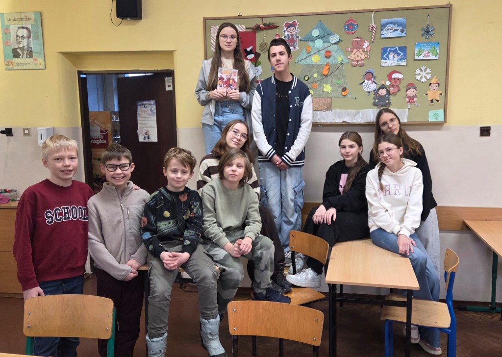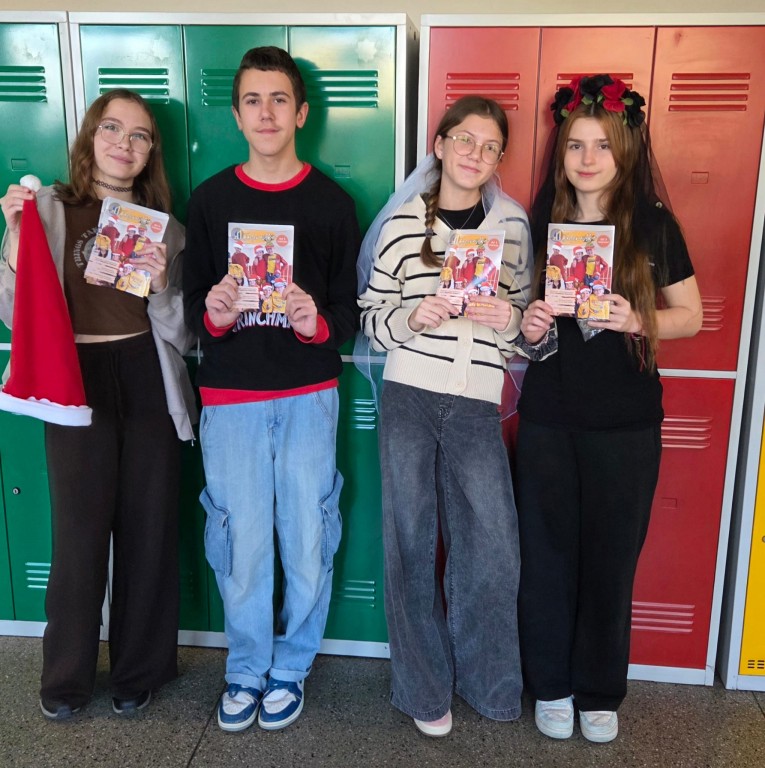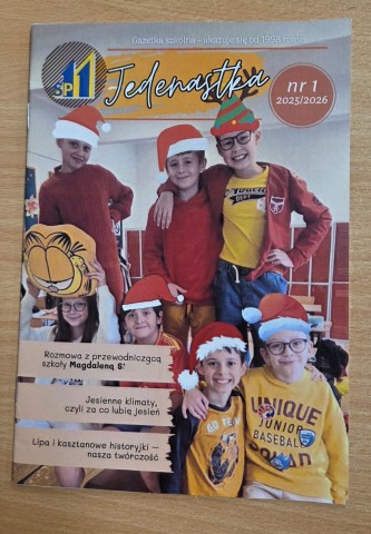 W ostatnim tygodniu przed świętami dotarła do nas z drukarni nowa gazetka szkolna w pięknej oprawie graficznej. Sprzedażą zajmowali się barwnie przebrani uczniowie klasy 7c.