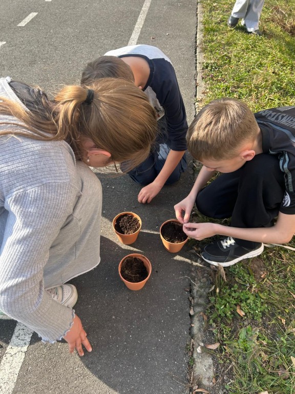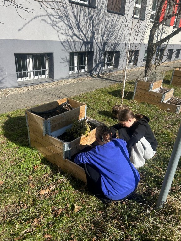 Uczniowie poznali podstawowe zasady dbania o rośliny i dowiedzieli się, jak ważna jest systematyczna pielęgnacja ogrodu. Rozmawiali także o tym, skąd pochodzą zdrowe produkty spożywcze i jak trafiają „z ogródka na talerz”. Zajęcia rozwijały współpracę w grupie oraz odpowiedzialność za wspólną przestrzeń. Celem lekcji było kształtowanie postaw prozdrowotnych, poznanie procesu uprawy roślin oraz uświadomienie uczniom znaczenia świeżych warzyw i ziół w codziennej diecie.